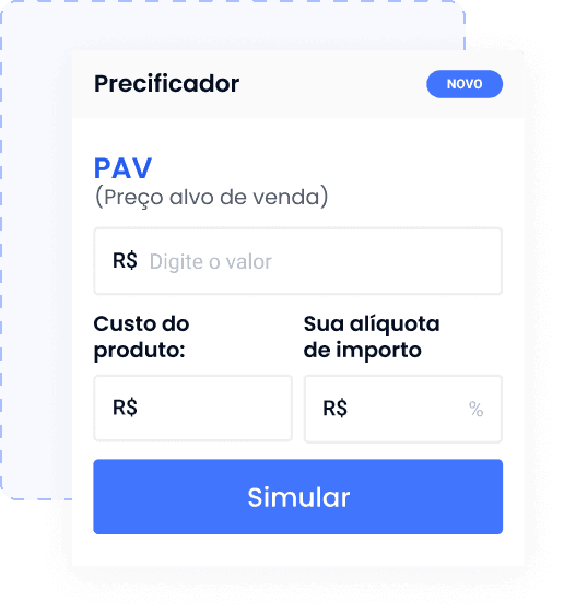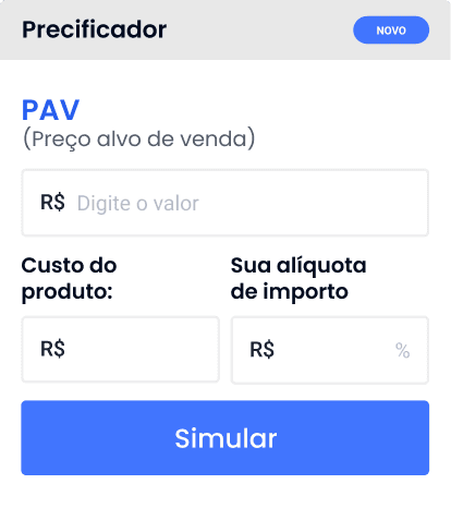 Descubra se você terá lucro direto na página do produto, informando apenas o preço do produto no fornecedor, a sua alíquota de imposto e o preço alvo de venda.