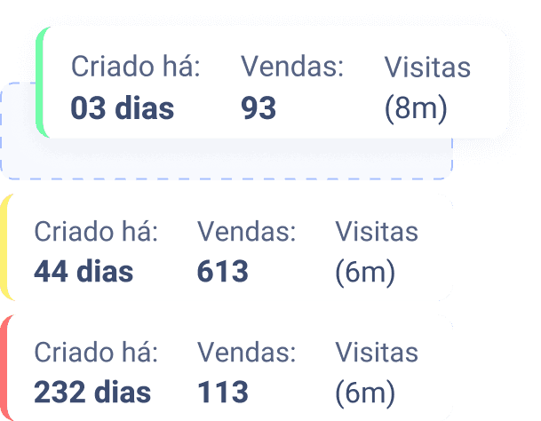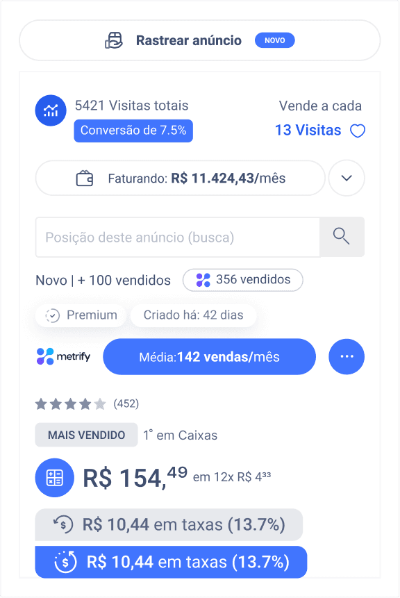 Quantidade de vendas, taxa de conversão do anúncio, quantas visitas são necessárias para efetuar uma venda, média de vendas do produto por mês, e muitas outras.