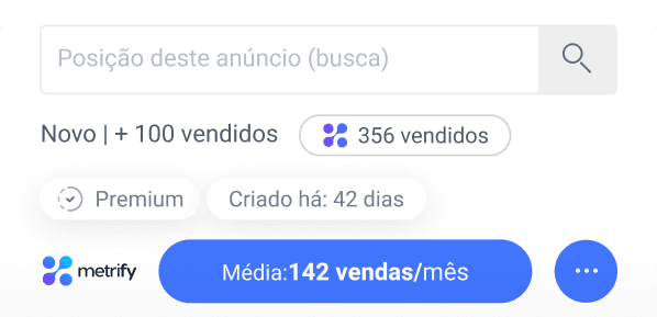 Tenha um diagnóstico completo e rápido do seu concorrente. Saiba a quantidade de vendas totais e a quantidade de anúncios no full com 1 clique.